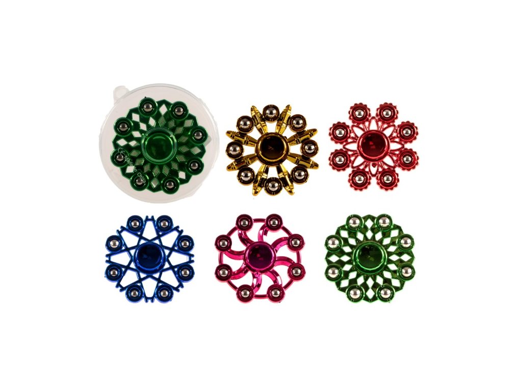 Oblíbená antistresová hračka v originálním designu – spinner o průměru 7,5 cm. Kovově lesklý vzhled a zajímavé tvary s kovovými kuličkami dělají z tohoto spinneru nejen zábavný doplněk, ale i stylovou hračku pro děti i dospělé.